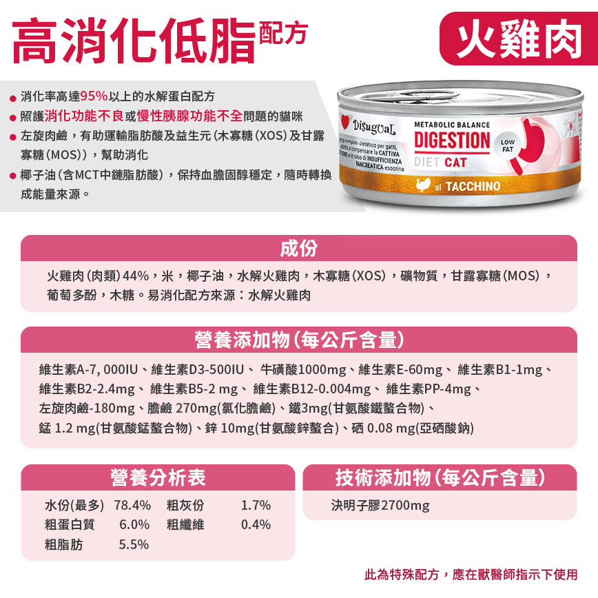 Disugual 意極鮮 處方糧 貓罐頭 高消化低脂配方 火雞 85g (DSDTG010) | 意大利製造 - 限時優惠價