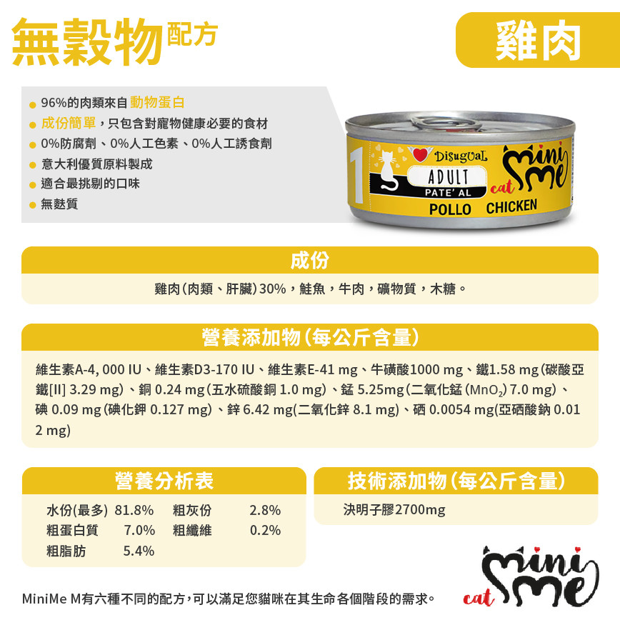 Disugual 意極鮮 貓罐頭 貓主食罐 MINI ME1 無穀物雞肉配方 85g (MIME001) | 意大利製造 - 限時試食價