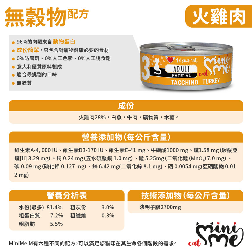 Disugual 意極鮮 貓罐頭 貓主食罐 MINI ME3 無穀物火雞配方 85g (MIME008) | 意大利製造 - 限時試食價