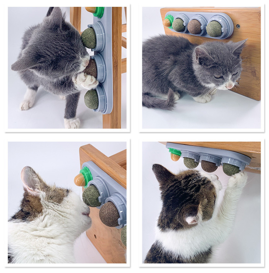 Lick Ball Cat Toy - Self-Entertaining Catnip Spinning Ball Set, Four Pieces (Random Color)