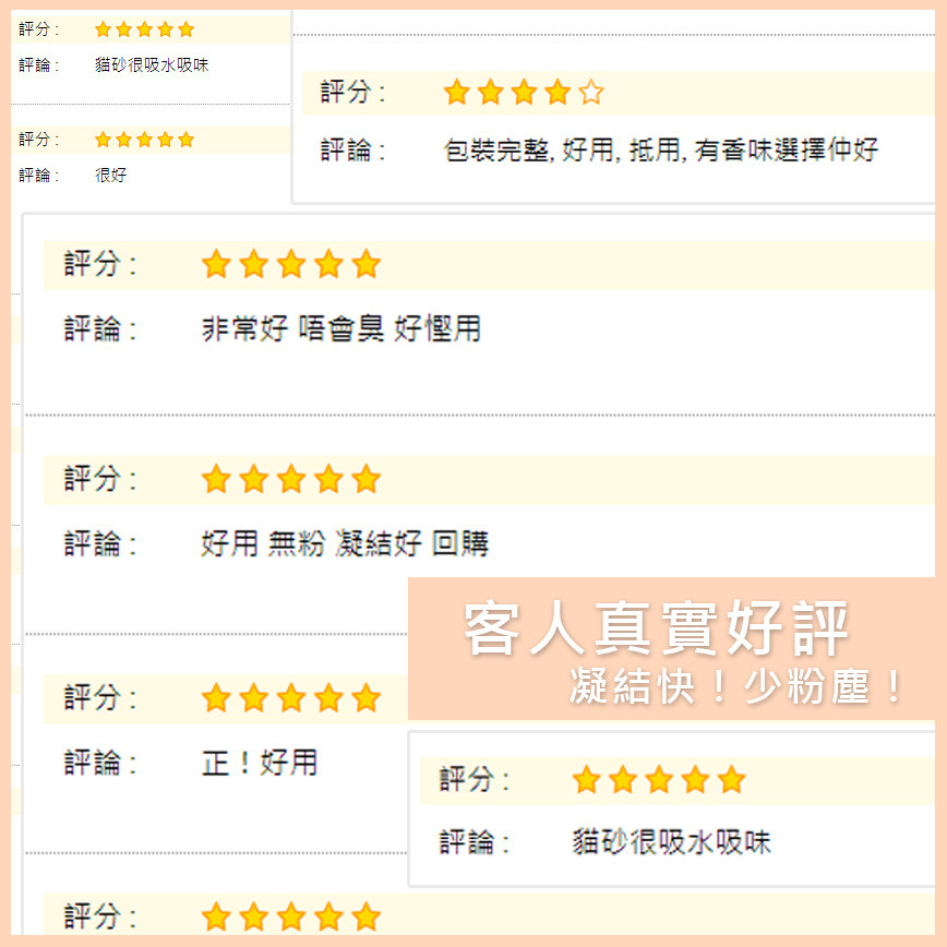 富士貓之王樣豆腐貓砂在市場上的評價普遍較好,回頭率高達 99%!消費者普遍讚賞無塵配方令凝結效果更加理想,仲可以有效減少屋企貓砂盆附近粉塵飛散嘅情況!。此款貓砂擁有 3 倍速吸水專利技術,超勁結團力能有效封鎖異味,使得室內環境保持清新。同時,由於其主要成分為豆腐,因此更容易處理和替換,對貓咪也較為友好。